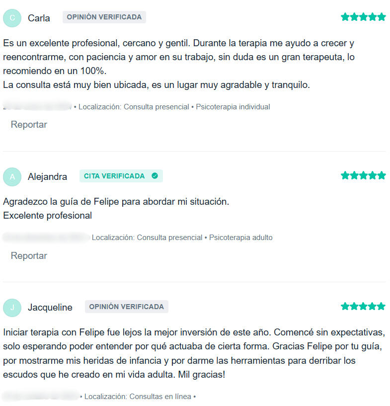 En esta breve evaluación, identificaremos las problemáticas principales que hoy afectan tu salud mental y emocional, con el fin de ordenar y dar claridad a lo que necesitas atender y trabajar (autoestima, relaciones, heridas de infancia, ansiedad, entre otros).Este beneficio es sólo para psicoterapia online y tiene cupos limitados al mes. Te invito a agendar tu sesión HOY“No somos responsables de la infancia que tuvimos, pero sí de la vida que construimos a partir de ella” (Vittorio Guidano)